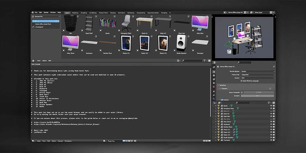 16 x Home Office models set up in Blender Asset Library + FBX File