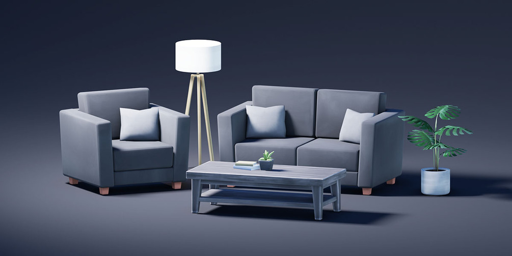 8 x Living Room models set up in Blender Asset Library + FBX File